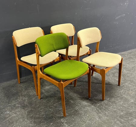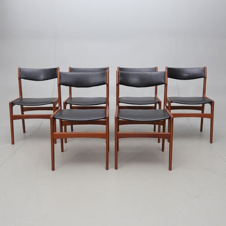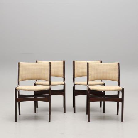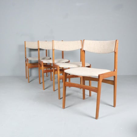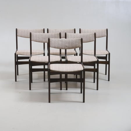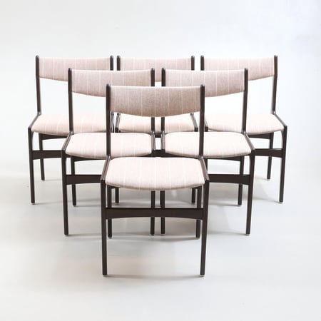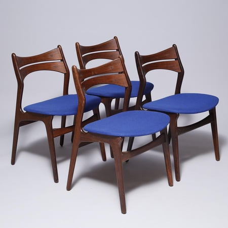 Gegründet in Odense, Dänemark, im Jahr 1950. Bekannt für tadellose dänische Handwerkskunst und klare, modernistische Linienführung der Mitte des Jahrhunderts. Die überwiegend aus Teak und Palisander gefertigten Stücke werden für ihre schlichte und dennoch stilvolle Ästhetik und Langlebigkeit geschätzt. Das Design-Erbe ist zu einem Synonym für Eleganz geworden, mit ikonischen Kreationen wie den Barhockern Modell 61 und den Esszimmerstühlen Modell 49, die allgemein als Inbegriff skandinavischen Designs gelten.