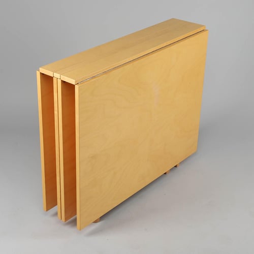 0Bruno Mathsson Maria Flap er et klassisk møbel af modernisme midår. Kendt for sin alsidighed, den har en foldbar funktion, der gør det muligt at transformere fra et fuld spisebord til et kompakt konsolbord. Lavet i bøgetræ, præsenterer det en tiltalende blanding af funktionalitet og æstetisk appel. Dens indbyggede minimalisme repræsenterer godt principperne for skandinavisk design.