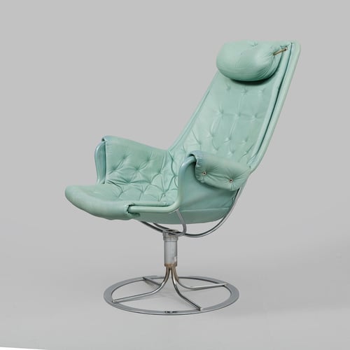 0The Bruno Mathsson Jetson chair features a striking, futuristic design that is defined by a durable and elegant steel frame, specifically crafted to recline for comfort. Its chair shell is typically upholstered in high-quality leather, with a matching headrest for further luxurious support. This Swedish furniture classic features a unique spring system that provides a gentle rocking motion, providing both improved relaxation and aesthetic beauty.