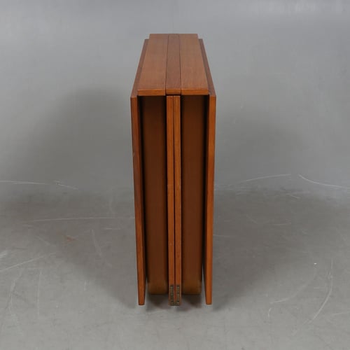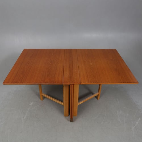 0Bruno Mathsson Maria Flap är en klassisk möbel av mellanårs modern design. Känd för dess mångsidighet, den har en fällbar funktion som gör att den kan omvandlas från en fullmatbord till ett kompakt konsolbord. Tillverkad i bokträ, presenterar det en tilltalande blandning av funktionalitet och estetisk dragningskraft. Dess inneboende minimalism representerar väl principerna för skandinavisk design.