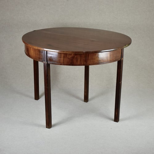 Lunette-shaped with retractable back legs with a drawer.